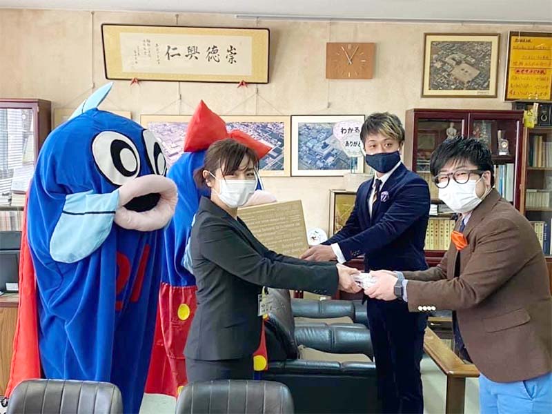 コロナ禍、スーツ生地で和柄マスクを製作・寄贈